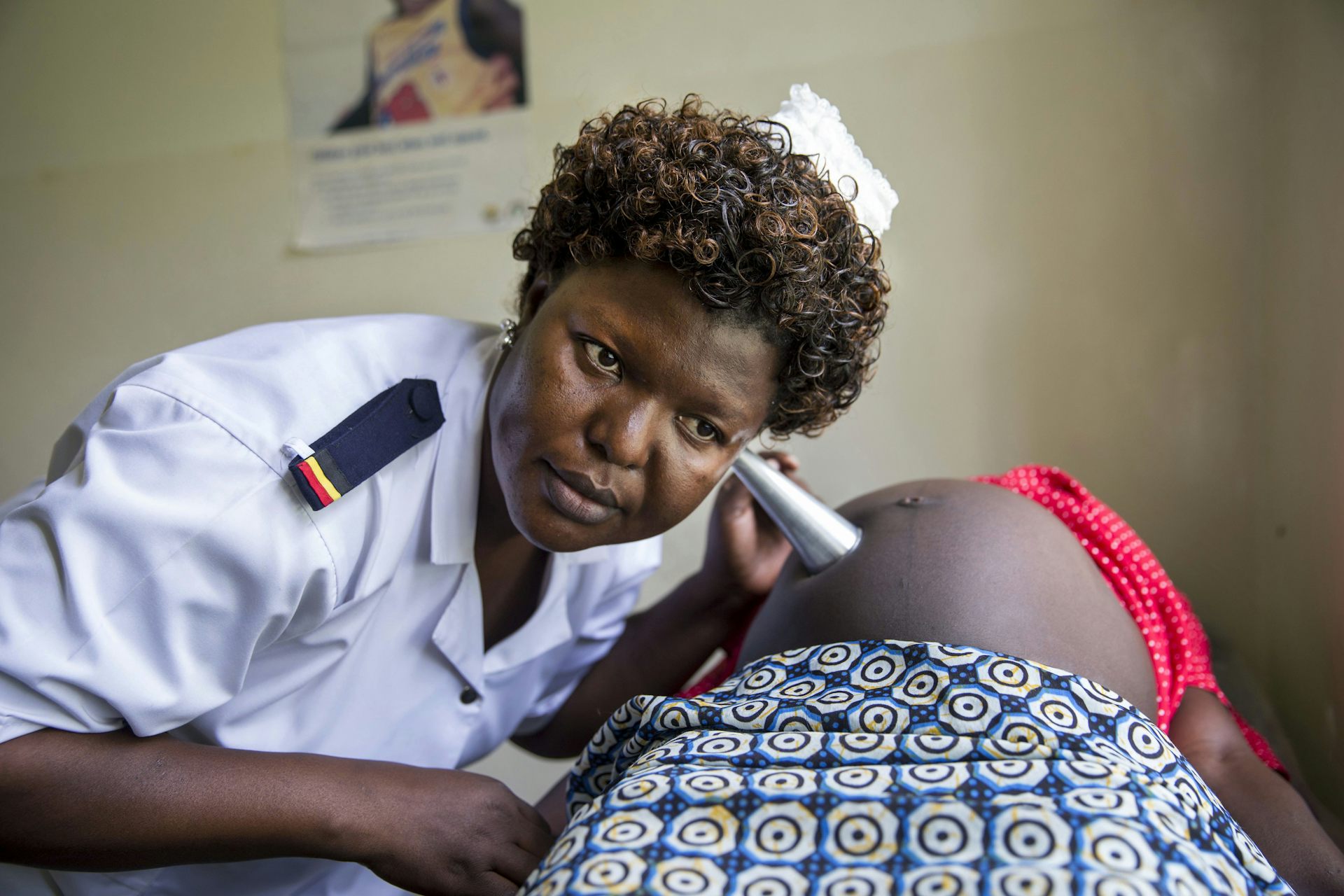 Nurse checking a pregnant woman at Mukujju clinic, Tororo, Uganda.