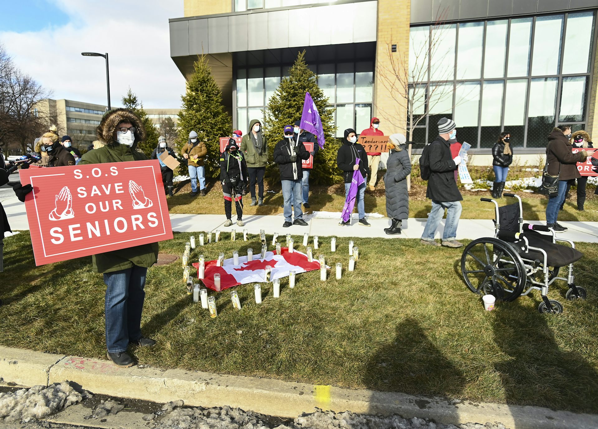 People protest outside the Tendercare Living Centre long-term-care facility in Scarborough, Ont. on Dec. 29, 2020. This LTC home has been hit hard by the second wave of the COVID-19 pandemic.