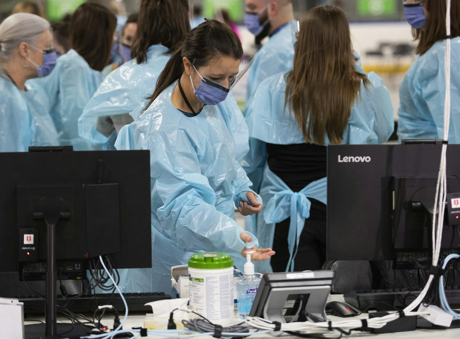 A health-care worker prepares for the opening of the COVID-19 Assessment Centre in Ottawa, during a media tour on March 13, 2020.