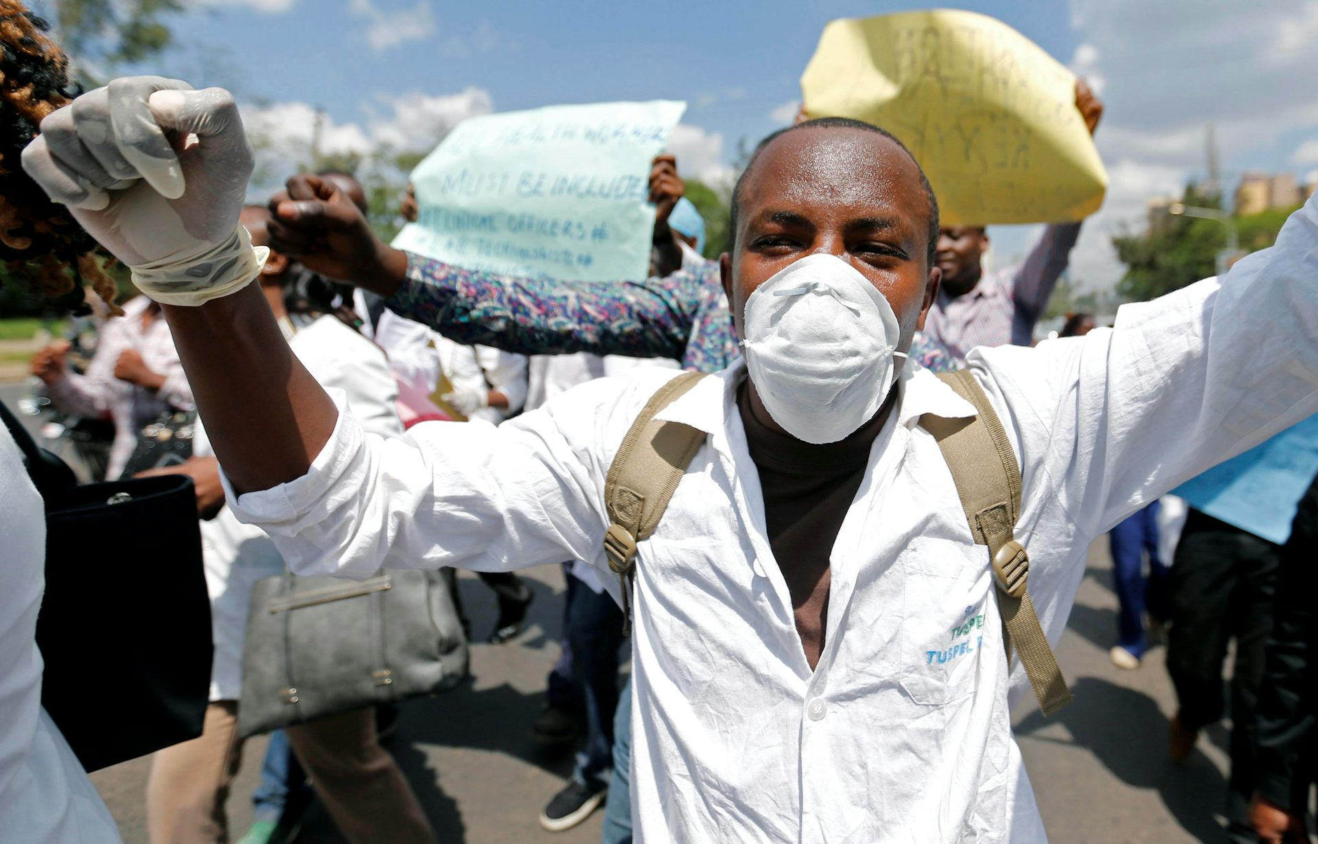 A Kenyan nurse participates in a march during their strike following failed negotiations between health unions and the government.