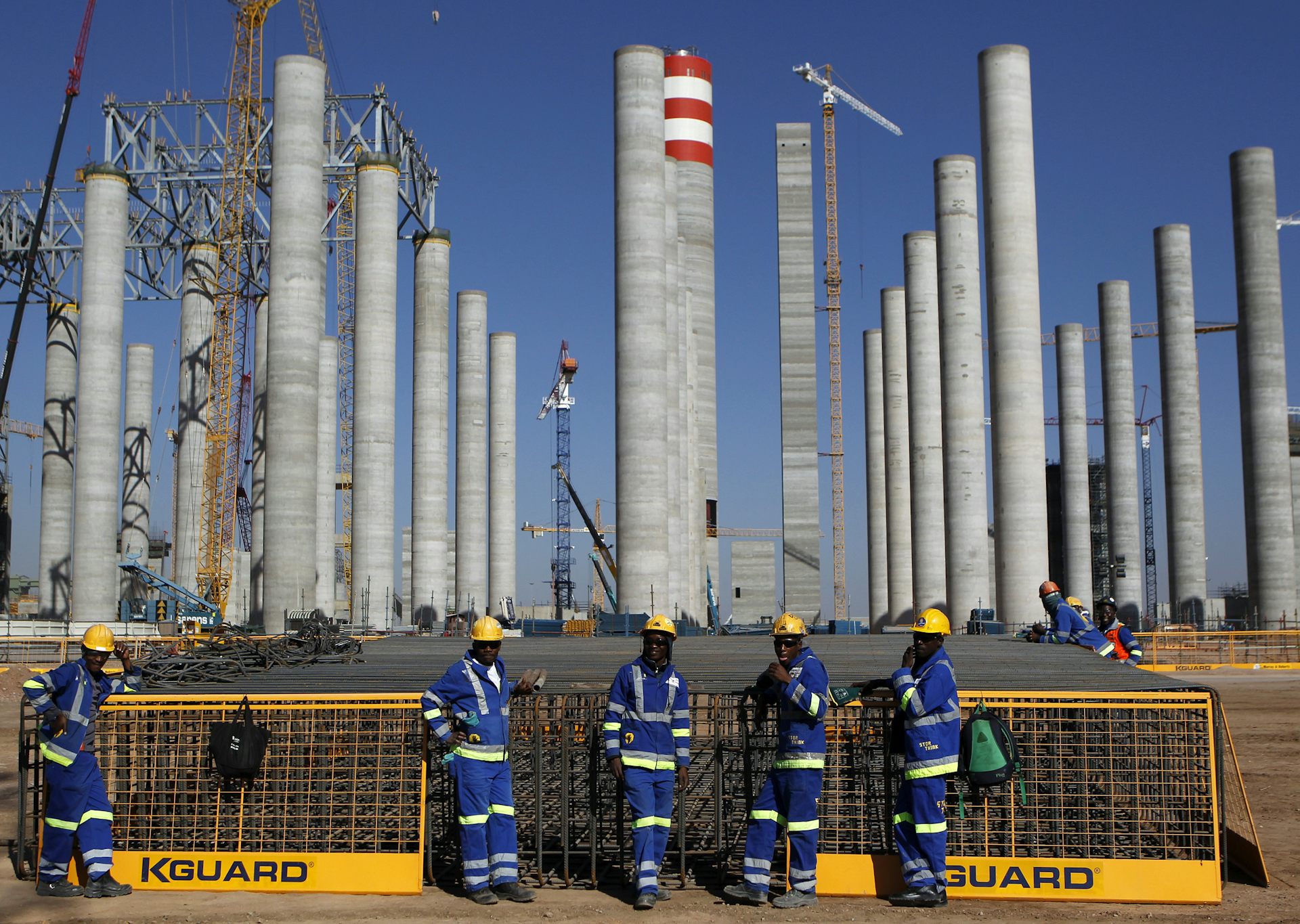 Workers at Medupi coal-fired power station during its construction, one of South Africa’s most costly and environmentally unfriendly projects.