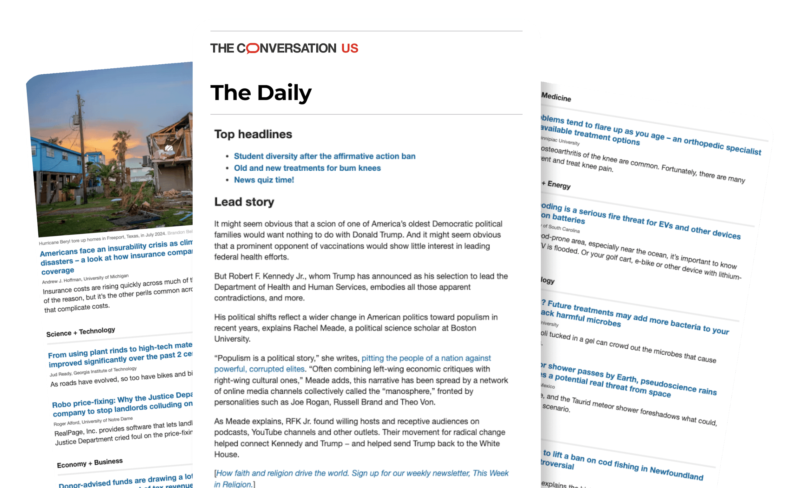 Get fact-based journalism written by experts on a wide range of topics in the news, in your inbox each morning, Monday - Saturday.